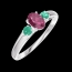 Anello Oro bianco 9 carati - Rubino Ovale 0.3 Carati - Pietre laterali Smeraldo