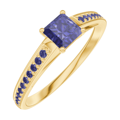 « L'ATELIER » Nº161313Anello Oro giallo 18 carati - Zaffiro blu Principessa 0.3 Carati - Incastonatura Zaffiro blu