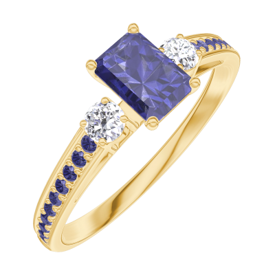 « L'ATELIER » Nº161433Anello Oro giallo 18 carati - Zaffiro blu Rettangolo 0.3 Carati - Pietre laterali Diamante - Incastonatura Zaffiro blu