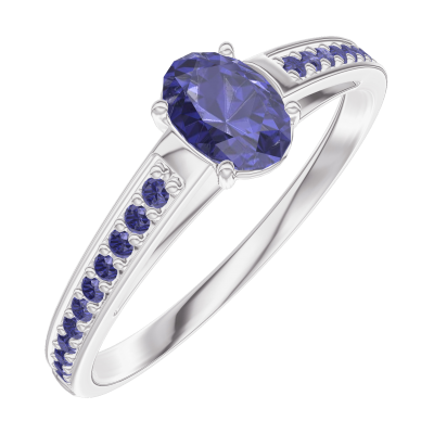 « L'ATELIER » N. 161515Anello Oro bianco 18 carati - Zaffiro blu Ovale 0.3 Carati - Incastonatura Zaffiro blu 5