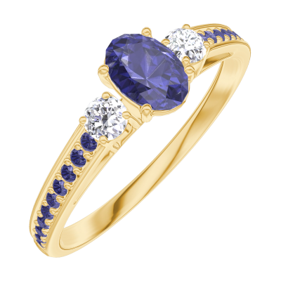 « L'ATELIER » Nº161534Anello Oro giallo 9 carati - Zaffiro blu Ovale 0.3 Carati - Pietre laterali Diamante - Incastonatura Zaffiro blu 5