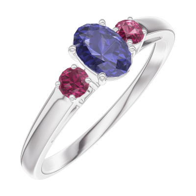 « L'ATELIER » Nº161543Anello Oro bianco 18 carati - Zaffiro blu Ovale 0.3 Carati - Pietre laterali Rubino 5 (3)