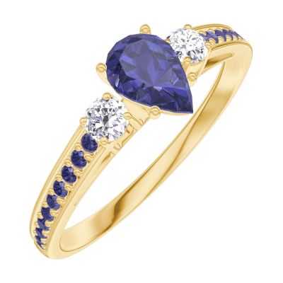 « L'ATELIER » Nº161634Anello Oro giallo 9 carati - Zaffiro blu Goccia 0.3 Carati - Pietre laterali Diamante - Incastonatura Zaffiro blu