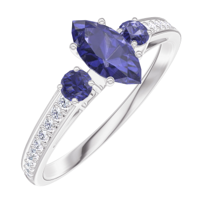 « L'ATELIER » Nº161768Anello Oro bianco 9 carati - Zaffiro blu Marchesa 0.3 Carati - Pietre laterali Zaffiro blu - Incastonatura Diamante