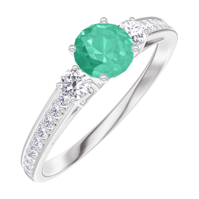 « L'ATELIER » N. 161827Anello Oro bianco 18 carati - Smeraldo Rotonda 0.3 Carati - Pietre laterali Diamante - Incastonatura Diamante 4.5 (36)