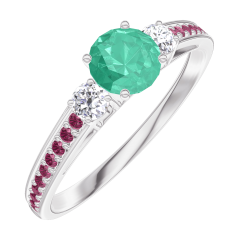 Anello Oro bianco 9 carati - Smeraldo Rotonda 0.3 Carati - Pietre laterali Diamante - Incastonatura Rubino