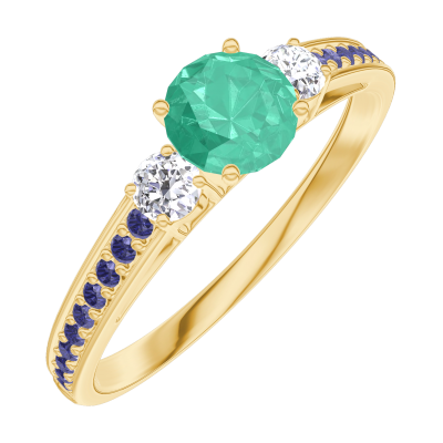 « L'ATELIER » N. 161834Anello Oro giallo 9 carati - Smeraldo Rotonda 0.3 Carati - Pietre laterali Diamante - Incastonatura Zaffiro blu 4.5