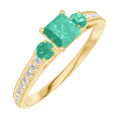 « L'ATELIER » Nº161985Anello Oro giallo 18 carati - Smeraldo Principessa 0.3 Carati - Pietre laterali Smeraldo - Incastonatura Diamante