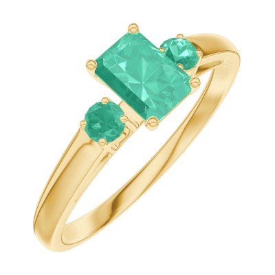 « L'ATELIER » N. 162082Anello Oro giallo 9 carati - Smeraldo Rettangolo 0.3 Carati - Pietre laterali Smeraldo