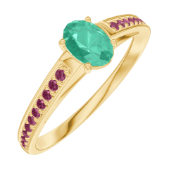 Anello Oro giallo 9 carati - Smeraldo Ovale 0.3 Carati - Incastonatura Rubino