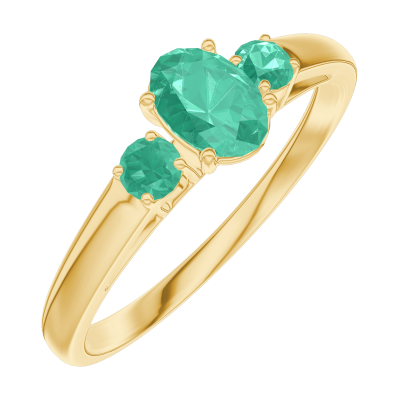 « L'ATELIER » N. 162182Anello Oro giallo 9 carati - Smeraldo Ovale 0.3 Carati - Pietre laterali Smeraldo 5