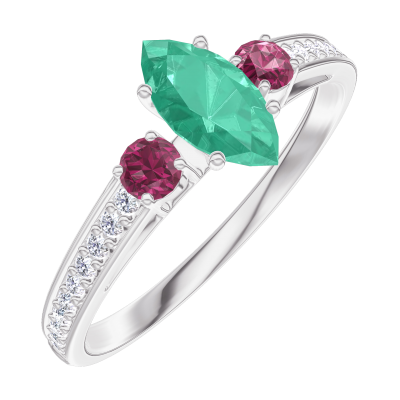 « L'ATELIER » Nº162347Anello Oro bianco 18 carati - Smeraldo Marchesa 0.3 Carati - Pietre laterali Rubino - Incastonatura Diamante