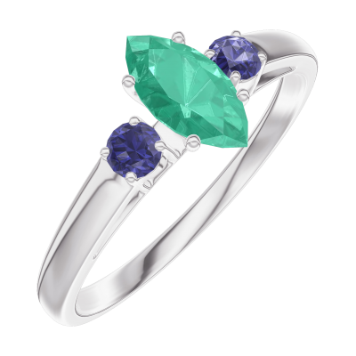 « L'ATELIER » N. 162363Anello Oro bianco 18 carati - Smeraldo Marchesa 0.3 Carati - Pietre laterali Zaffiro blu