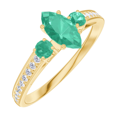 « L'ATELIER » N. 162386Anello Oro giallo 9 carati - Smeraldo Marchesa 0.3 Carati - Pietre laterali Smeraldo - Incastonatura Diamante