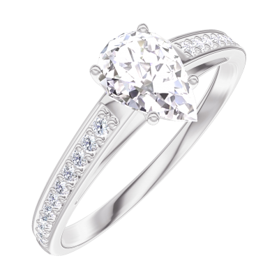 « L'ATELIER » N. 162807Anello Oro bianco 18 carati - Diamante Goccia 0.5 Carati - Incastonatura Diamante