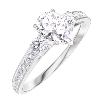 « L'ATELIER » N. 162827Anello Oro bianco 18 carati - Diamante Goccia 0.5 Carati - Pietre laterali Diamante - Incastonatura Diamante