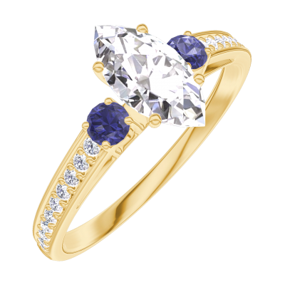 « L'ATELIER » Nº162965Anello Oro giallo 18 carati - Diamante Marchesa 0.5 Carati - Pietre laterali Zaffiro blu - Incastonatura Diamante