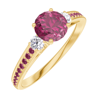 « L'ATELIER » N. 163029Anello Oro giallo 18 carati - Rubino Rotonda 0.5 Carati - Pietre laterali Diamante - Incastonatura Rubino 4.5