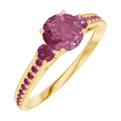 « L'ATELIER » Nº163049Anello Oro giallo 18 carati - Rubino Rotonda 0.5 Carati - Pietre laterali Rubino - Incastonatura Rubino 4.5