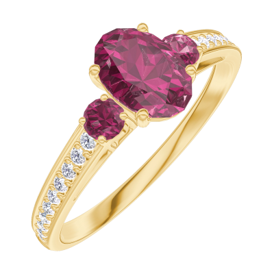 « L'ATELIER » N. 163346Anello Oro giallo 9 carati - Rubino Ovale 0.5 Carati - Pietre laterali Rubino - Incastonatura Diamante