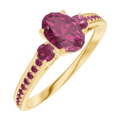 « L'ATELIER » N. 163350Anello Oro giallo 9 carati - Rubino Ovale 0.5 Carati - Pietre laterali Rubino - Incastonatura Rubino