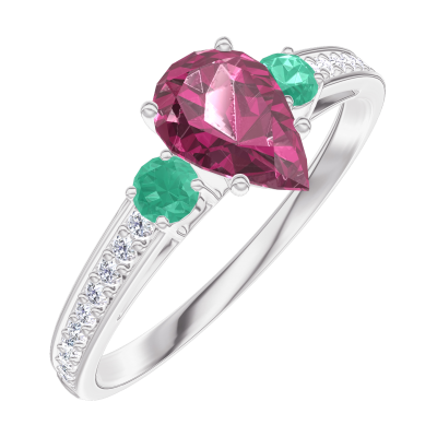 « L'ATELIER » N. 163487Anello Oro bianco 18 carati - Rubino Goccia 0.5 Carati - Pietre laterali Smeraldo - Incastonatura Diamante