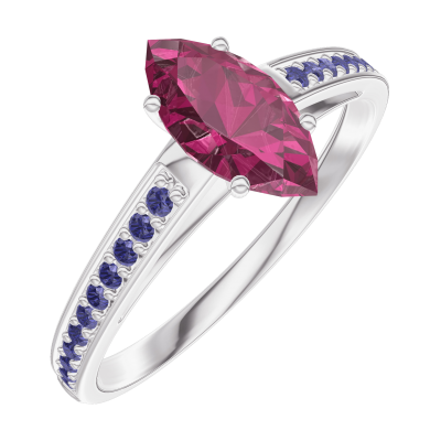 « L'ATELIER » N. 163515Anello Oro bianco 18 carati - Rubino Marchesa 0.5 Carati - Incastonatura Zaffiro blu