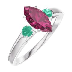 Anello Oro bianco 9 carati - Rubino Marchesa 0.5 Carati - Pietre laterali Smeraldo