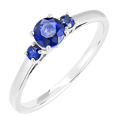 Anello Oro bianco 9 carati - Zaffiro blu Rotonda 0.5 Carati - Pietre laterali Zaffiro blu