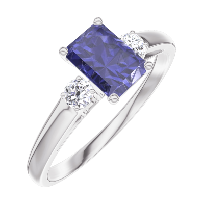 « L'ATELIER » Nº163824Anello Oro bianco 9 carati - Zaffiro blu Rettangolo 0.5 Carati - Pietre laterali Diamante