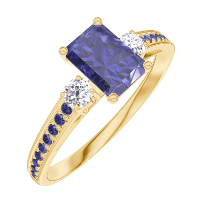« L'ATELIER » Nº163834Anello Oro giallo 9 carati - Zaffiro blu Rettangolo 0.5 Carati - Pietre laterali Diamante - Incastonatura Zaffiro blu