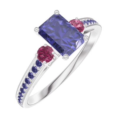 « L'ATELIER » Nº163855Anello Oro bianco 18 carati - Zaffiro blu Rettangolo 0.5 Carati - Pietre laterali Rubino - Incastonatura Zaffiro blu