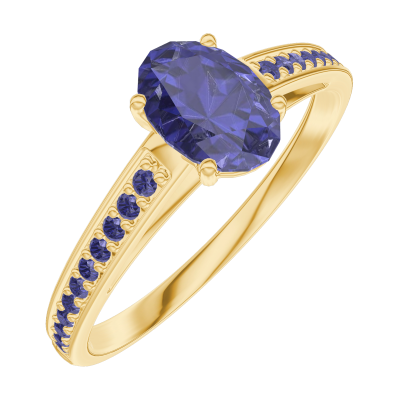 « L'ATELIER » Nº163913Anello Oro giallo 18 carati - Zaffiro blu Ovale 0.5 Carati - Incastonatura Zaffiro blu