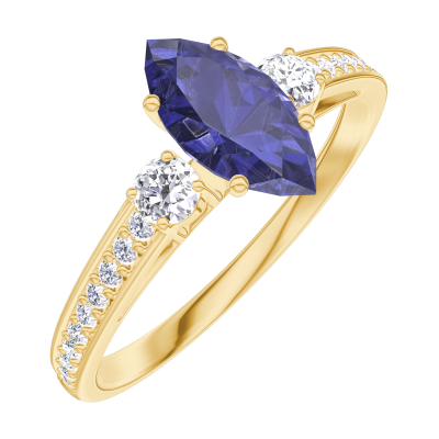 « L'ATELIER » N. 164125Anello Oro giallo 18 carati - Zaffiro blu Marchesa 0.5 Carati - Pietre laterali Diamante - Incastonatura Diamante