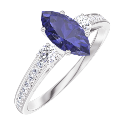 « L'ATELIER » N. 164128Anello Oro bianco 9 carati - Zaffiro blu Marchesa 0.5 Carati - Pietre laterali Diamante - Incastonatura Diamante