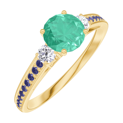 « L'ATELIER » N. 164233Anello Oro giallo 18 carati - Smeraldo Rotonda 0.5 Carati - Pietre laterali Diamante - Incastonatura Zaffiro blu 4.5