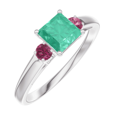 « L'ATELIER » N. 164344Anello Oro bianco 9 carati - Smeraldo Principessa 0.5 Carati - Pietre laterali Rubino