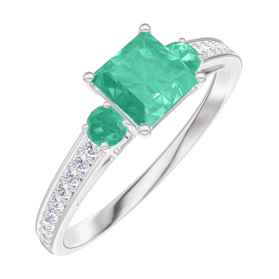 « L'ATELIER » Nº164388Anello Oro bianco 9 carati - Smeraldo Principessa 0.5 Carati - Pietre laterali Smeraldo - Incastonatura Diamante