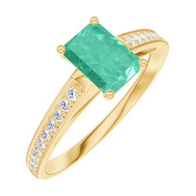 « L'ATELIER » N. 164406Anello Oro giallo 9 carati - Smeraldo Rettangolo 0.5 Carati - Incastonatura Diamante