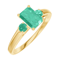 Anello Oro giallo 18 carati - Smeraldo Rettangolo 0.5 Carati - Pietre laterali Smeraldo