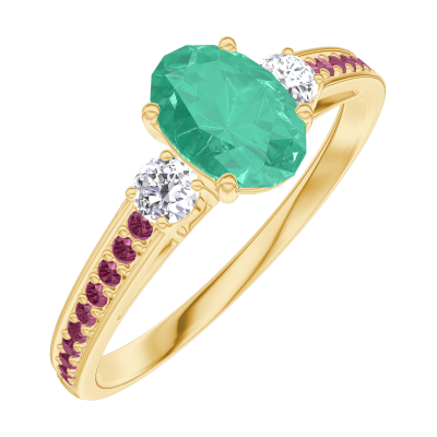 « L'ATELIER » Nº164530Anello Oro giallo 9 carati - Smeraldo Ovale 0.5 Carati - Pietre laterali Diamante - Incastonatura Rubino