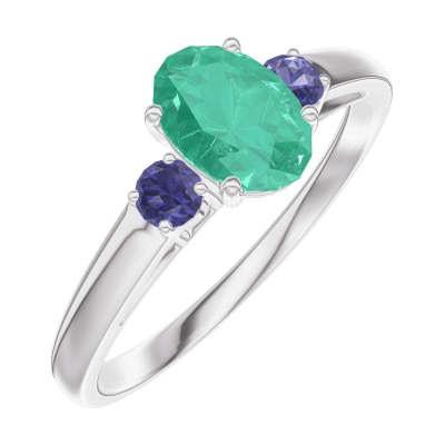 « L'ATELIER » Nº164564Anello Oro bianco 9 carati - Smeraldo Ovale 0.5 Carati - Pietre laterali Zaffiro blu