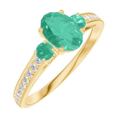« L'ATELIER » N. 164585Anello Oro giallo 18 carati - Smeraldo Ovale 0.5 Carati - Pietre laterali Smeraldo - Incastonatura Diamante