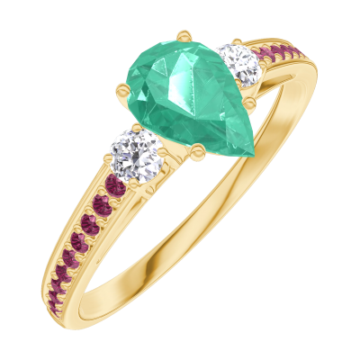 « L'ATELIER » N. 164630Anello Oro giallo 9 carati - Smeraldo Goccia 0.5 Carati - Pietre laterali Diamante - Incastonatura Rubino