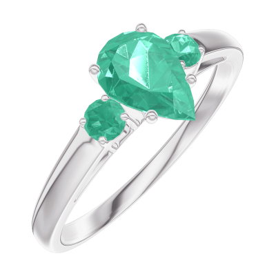 « L'ATELIER » Nº164684Anello Oro bianco 9 carati - Smeraldo Goccia 0.5 Carati - Pietre laterali Smeraldo