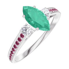 Anello Oro bianco 9 carati - Smeraldo Marchesa 0.5 Carati - Pietre laterali Diamante - Incastonatura Rubino