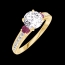 Anello Oro giallo 18 carati - Diamante Rotonda 0.7 Carati - Pietre laterali Rubino - Incastonatura Diamante