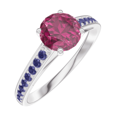 « L'ATELIER » N. 165415Anello Oro bianco 18 carati - Rubino Rotonda 0.7 Carati - Incastonatura Zaffiro blu 4.9