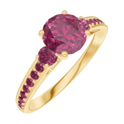 « L'ATELIER » N. 165449Anello Oro giallo 18 carati - Rubino Rotonda 0.7 Carati - Pietre laterali Rubino - Incastonatura Rubino 4.9