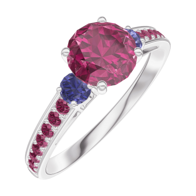 « L'ATELIER » Nº165471Anello Oro bianco 18 carati - Rubino Rotonda 0.7 Carati - Pietre laterali Zaffiro blu - Incastonatura Rubino 5